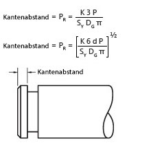 Ringnuten, die sich nahe dem Ende einer Welle oder eines Geh"auses befinden, sollten für eine maximale St"arke einen angemessenen Kantenabstand haben. Es sollte sowohl auf Abscherung als auch auf Verformung geprüft werden, und es ist der gr"ossere Wert für den Kantenabstand auszuw"ahlen. Im Allgemeinen kann man sich dem minimalen Kantenabstand durch einen Wert ann"ahern, der dem Dreifachen der Nuttiefe entspricht.